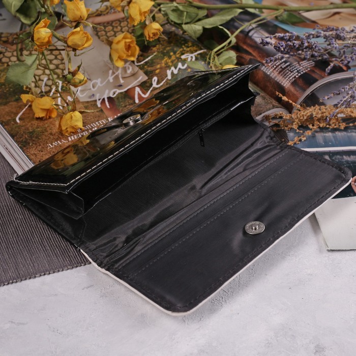 Кошелёк женский на клапане, 2 отдела, для монет, цвет чёрный/белый