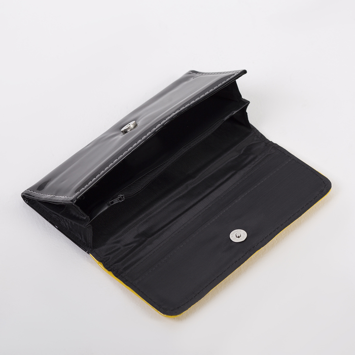 Кошелёк женский на клапане, 2 отдела, для монет, цвет чёрный/жёлтый