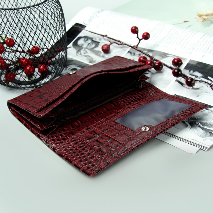 Кошелёк женский на клапане, 2 отдела, отдел для карт, отдел для монет, бордовый кайман