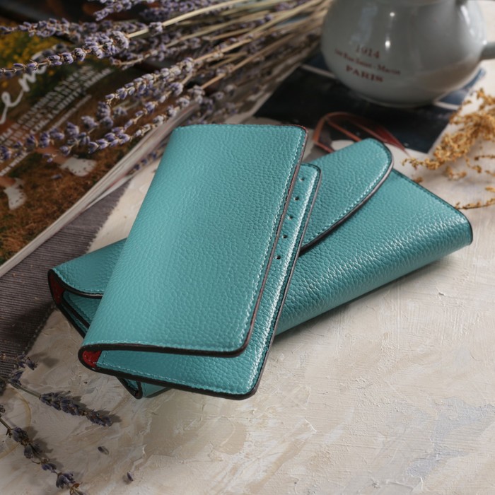 Кошелёк женский на клапане, 2 отдела, вкладыш для карт, отдел для монет, цвет мятный