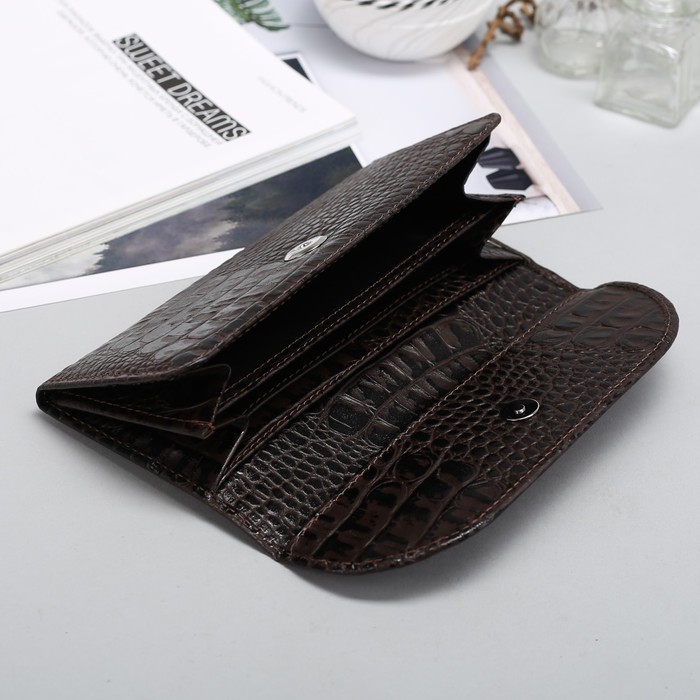 Кошелёк женский на клапане, 2 отделения, отдел для монет, кайман, коричневый