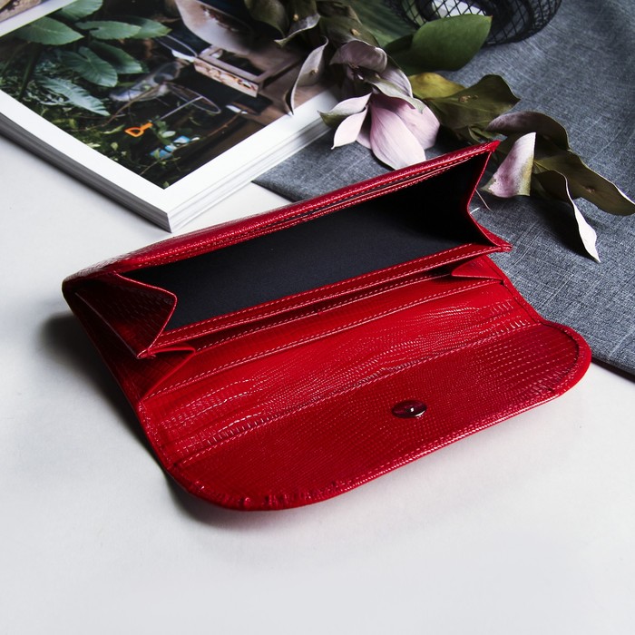 Кошелёк женский на клапане, 2 отделения, отдел для монет, ящерица, красный