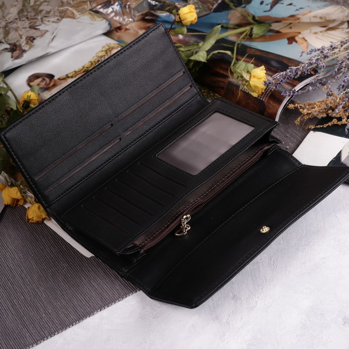 Кошелёк женский на клапане, 3 отдела, для карт, монет, цвет чёрный