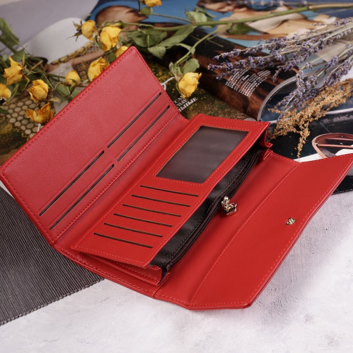 Кошелёк женский на клапане, 3 отдела, для карт, монет, цвет красный