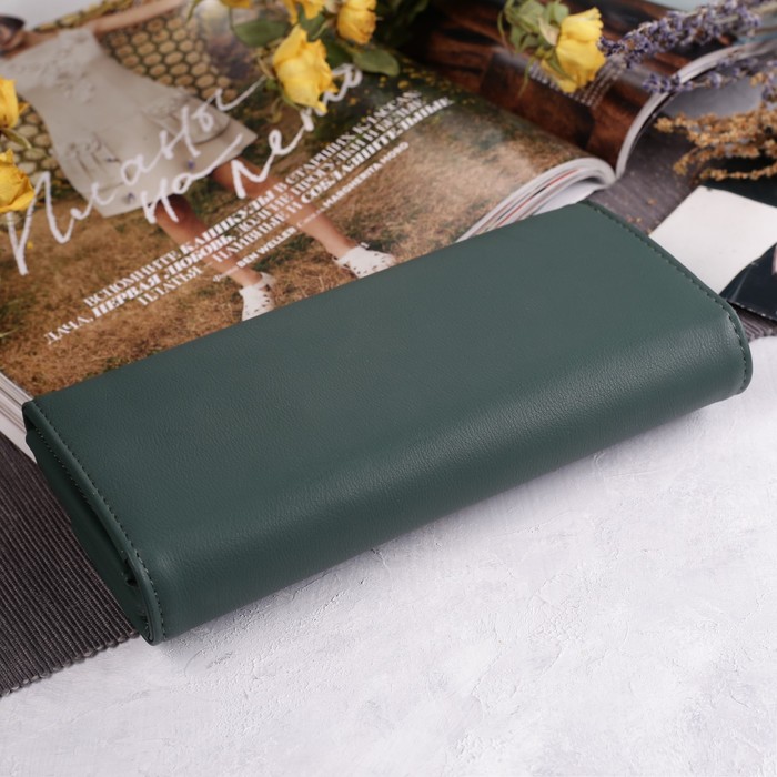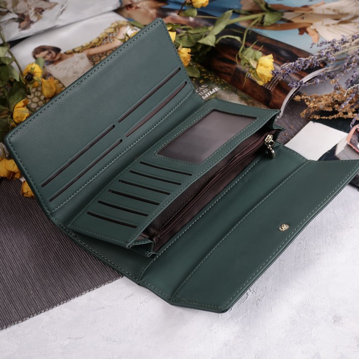 Кошелёк женский на клапане, 3 отдела, для карт, монет, цвет зелёный