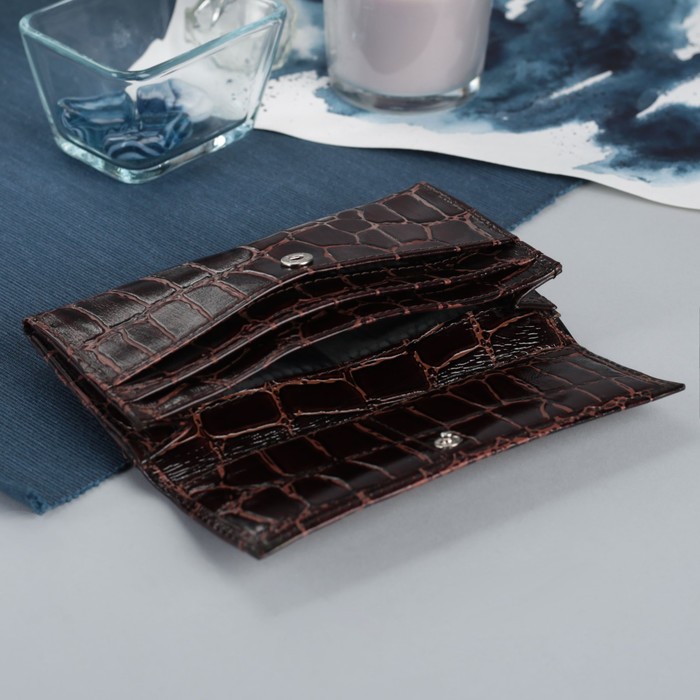 Кошелёк женский на клапане, 3 отдела, отдел для карт, 1 наружный карман, коричневый крокодил