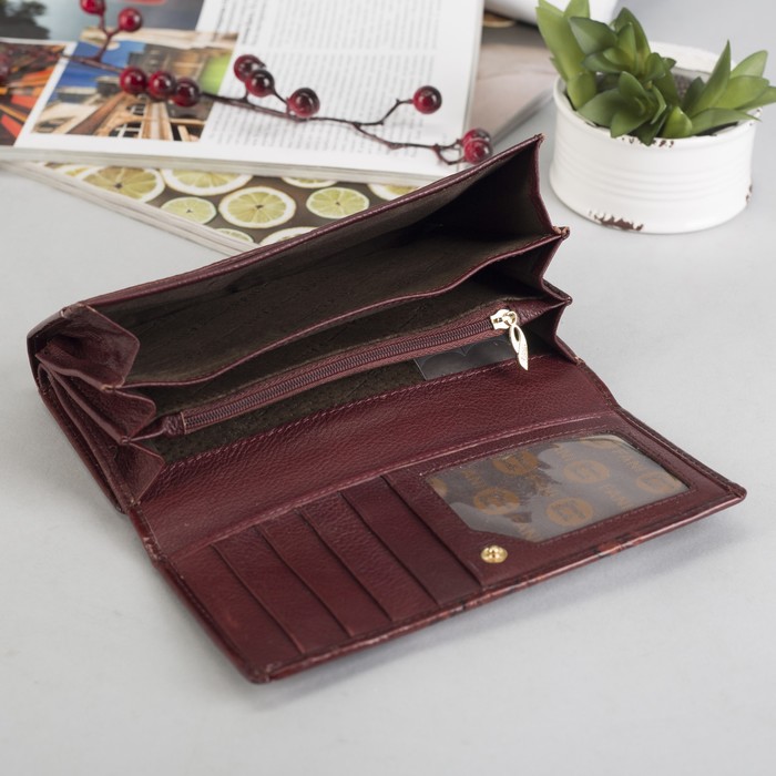 Кошелёк женский на клапане, 3 отдела, отдел для карт, для монет, наружный карман, цвет коричневый