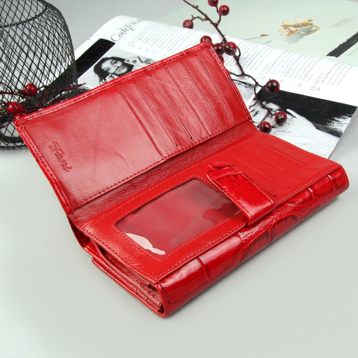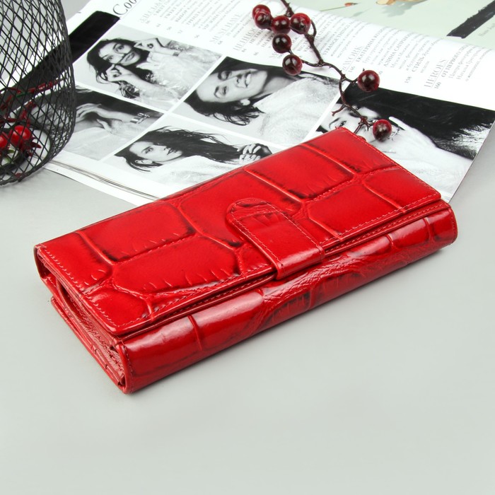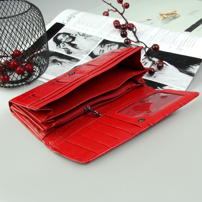 Кошелёк женский на клапане, 3 отдела, отдел для монет, для карт, цвет красный