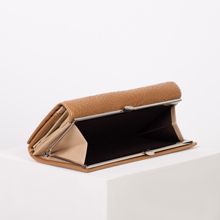 Кошелёк женский на клапане, 4 отдела, для карт, 2 отдела на рамке, цвет бежевый
