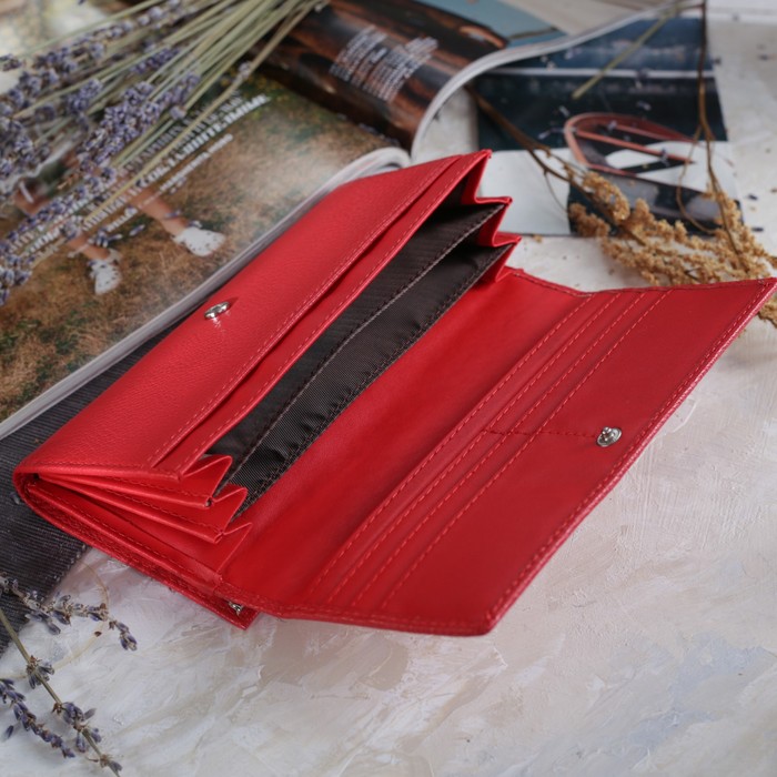 Кошелёк женский на клапане, 4 отдела, для карт, 2 отдела на рамке, цвет красный