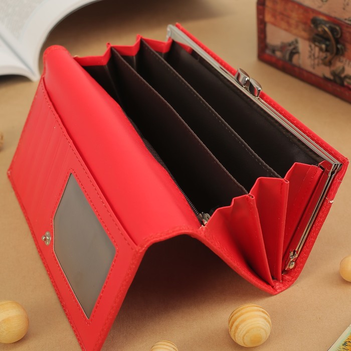 Кошелёк женский на клапане, 4 отдела, для карт, 2 отдела на рамке, цвет красный