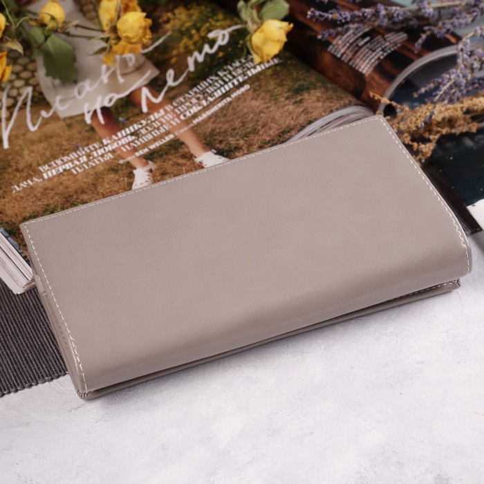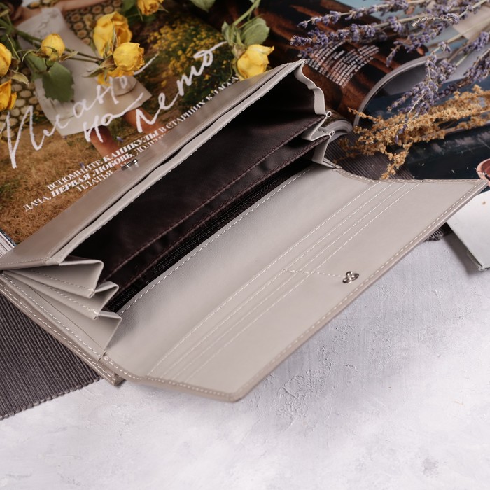 Кошелёк женский на клапане, 4 отдела, для карт, 2 отдела на рамке, цвет серый