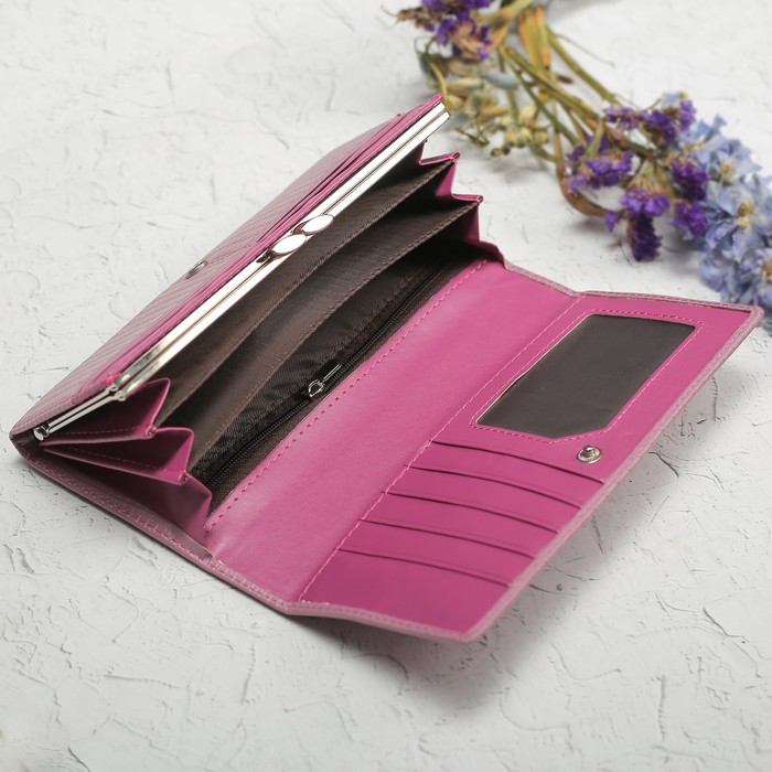 Кошелёк женский на клапане, 4 отдела, для карт, 2 отдела на рамке, цвет сиреневый