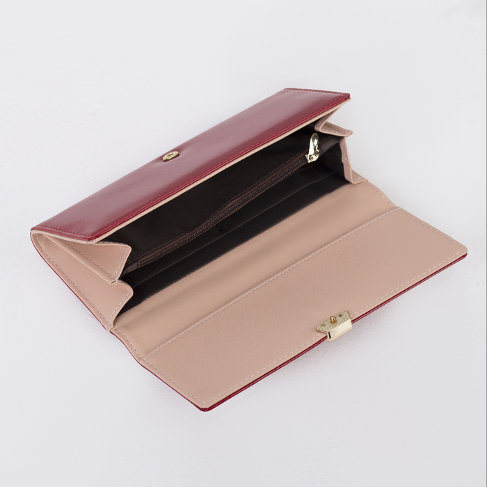 Кошелёк женский на клапане, 4 отдела, для карт, монет, наружный карман, цвет красный
