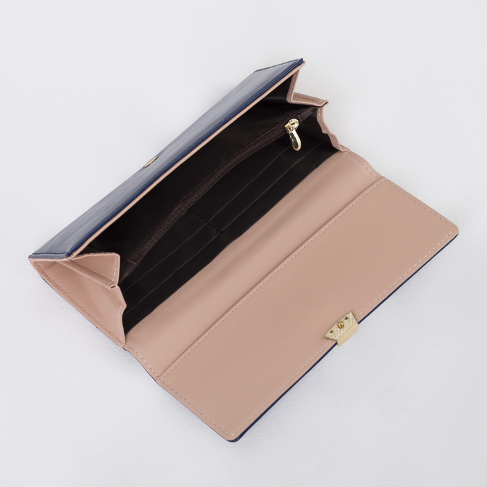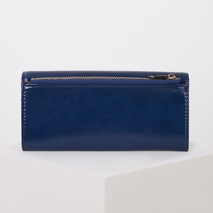 Кошелёк женский на клапане, 4 отдела, для карт, монет, наружный карман, цвет синий