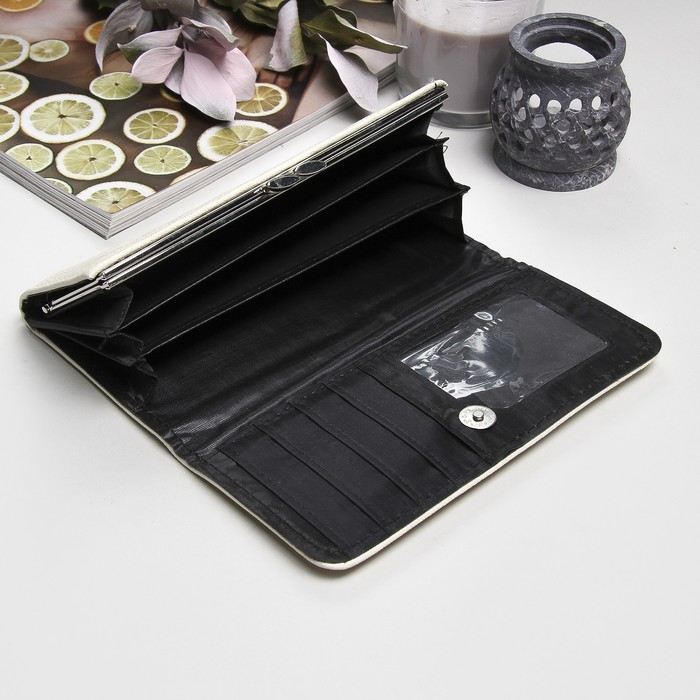 Кошелёк женский на клапане "Классика", 4 отдела, отдел на рамке, отдел для карт, цвет белый