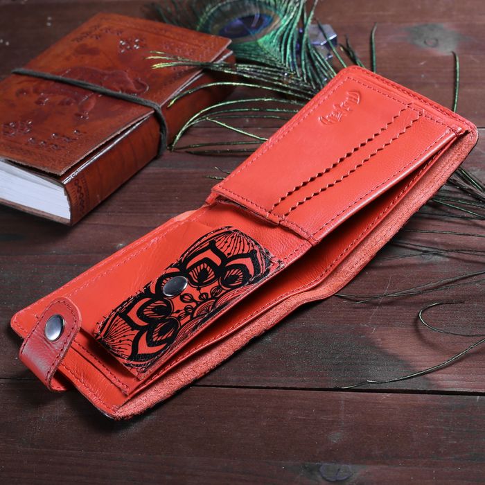 Кошелёк женский на кнопке, 1 отдел, для карт, монет, цвет чёрный/красный