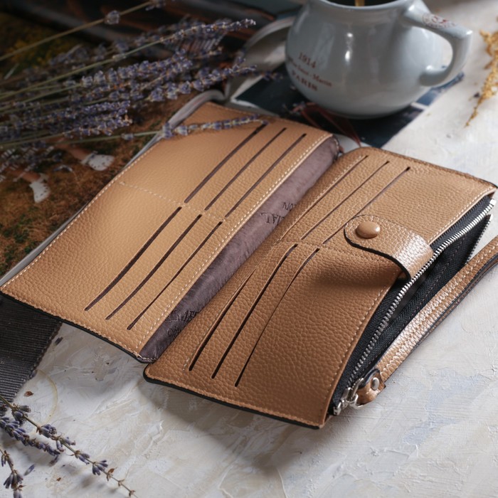 Кошелёк женский на кнопке, 1 отдел, отдел для карт, наружный карман, цвет бежевый