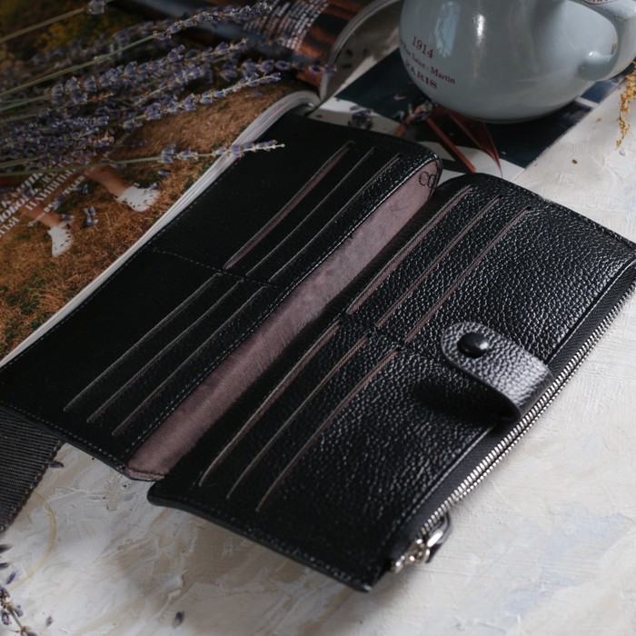 Кошелёк женский на кнопке, 1 отдел, отдел для карт, наружный карман, цвет чёрный