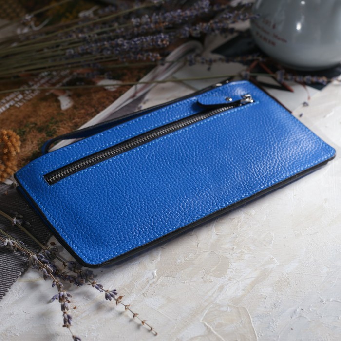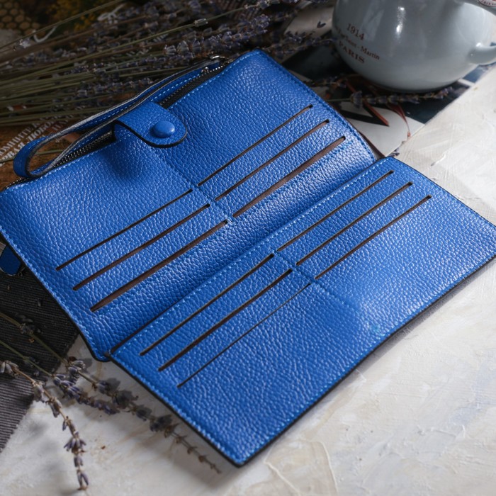 Кошелёк женский на кнопке, 1 отдел, отдел для карт, наружный карман, цвет синий