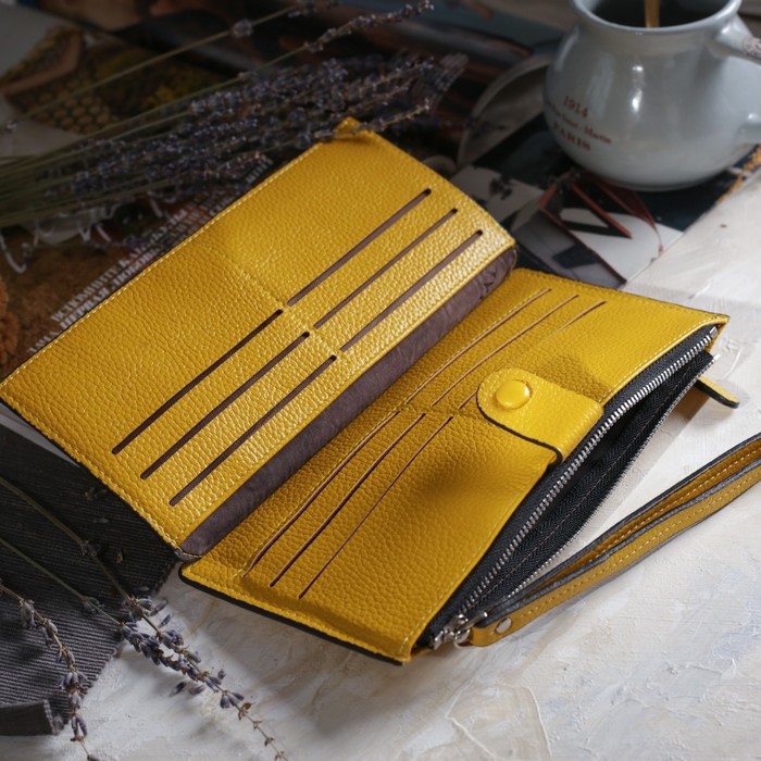 Кошелёк женский на кнопке, 1 отдел, отдел для карт, наружный карман, цвет жёлтый