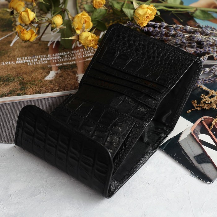 Кошелёк женский на кнопке, 1 отдел, отдел для монет, чёрный кайман