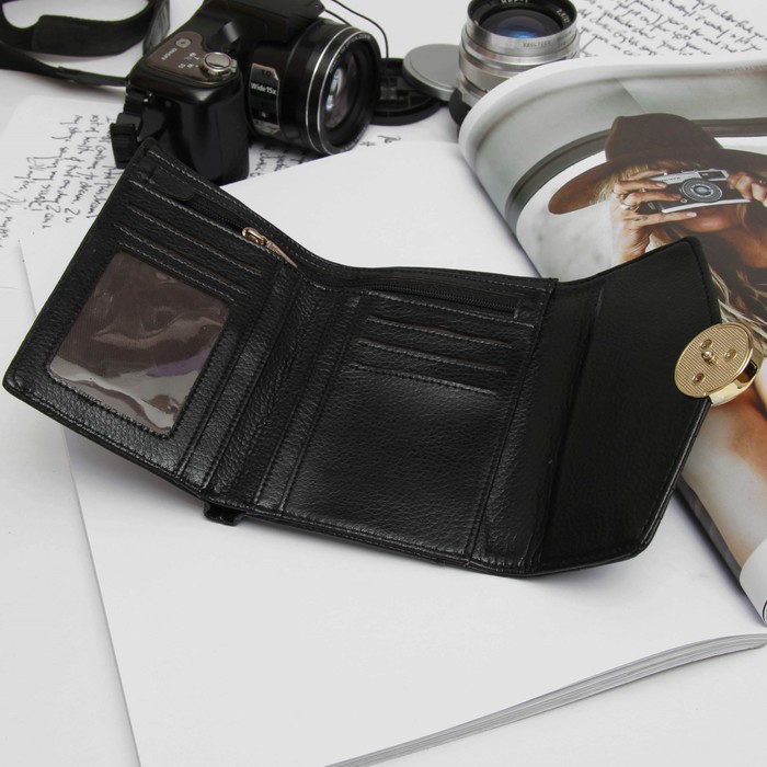 Кошелёк женский на кнопке, 2 отдела, для карт, монет, цвет чёрный