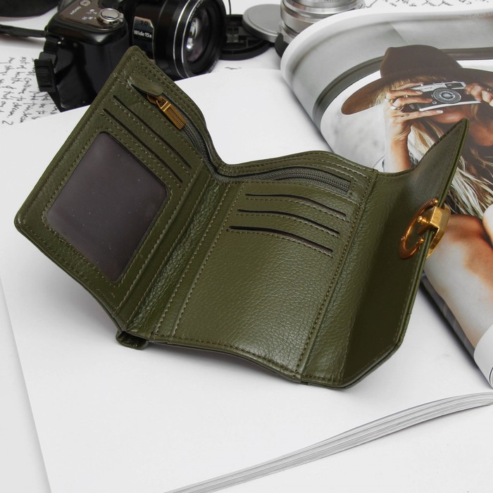 Кошелёк женский на кнопке, 2 отдела, для карт, монет, цвет зелёный