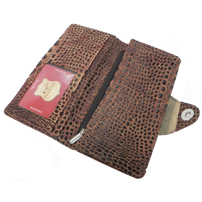 Кошелёк женский на кнопке, 2 отдела для купюр, для монет, для кредитных карт, цвет коричневый