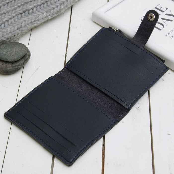 Кошелёк женский на кнопке, 2 отдела, отдел для карт, монет, наружный карман, цвет тёмно-синий