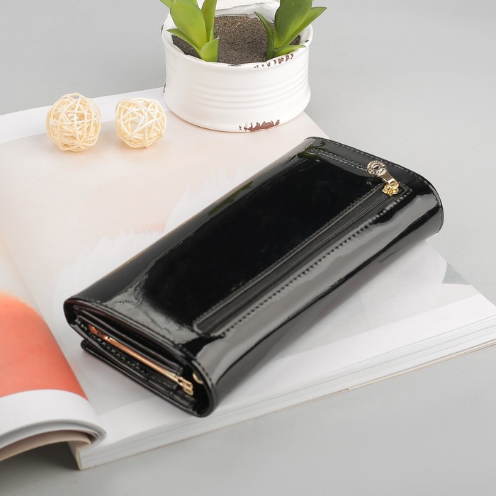 Кошелёк женский на кнопке, 2 отдела, отдел для кредиток и монет, цвет чёрный