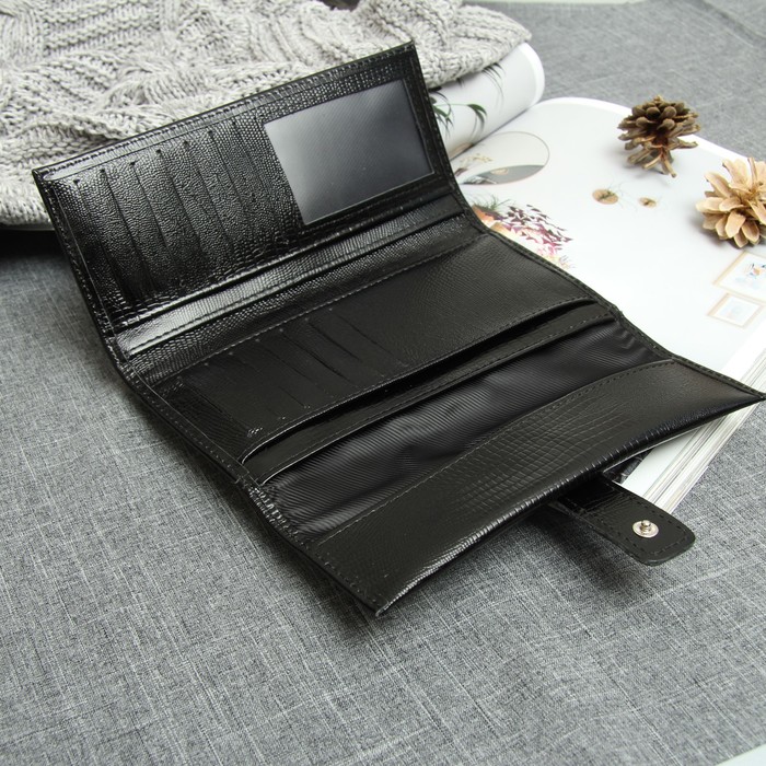 Кошелёк женский на кнопке, 2 отделения, отдел для монет, матовый, игуана чёрный