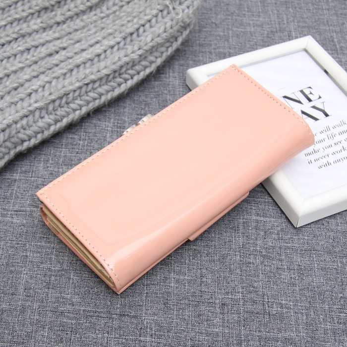 Кошелёк женский на кнопке, 4 отдела, 2 отдела на рамке, для карт, цвет бежевый