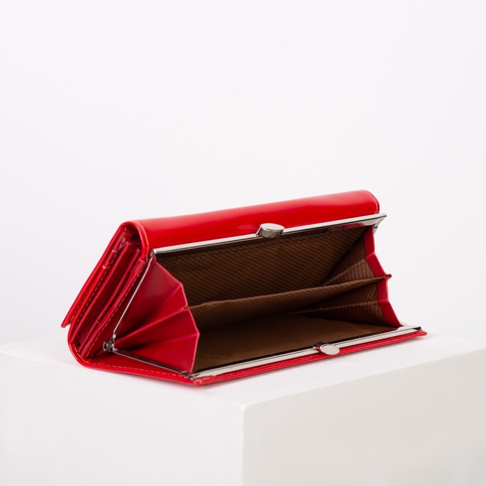 Кошелёк женский на кнопке, 4 отдела, 2 отдела на рамке, для карт, цвет красный