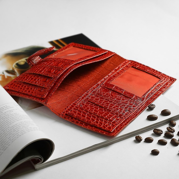 Кошелёк женский, на кнопке, 4 отдела, для карт, для монет, кайман, цвет красный