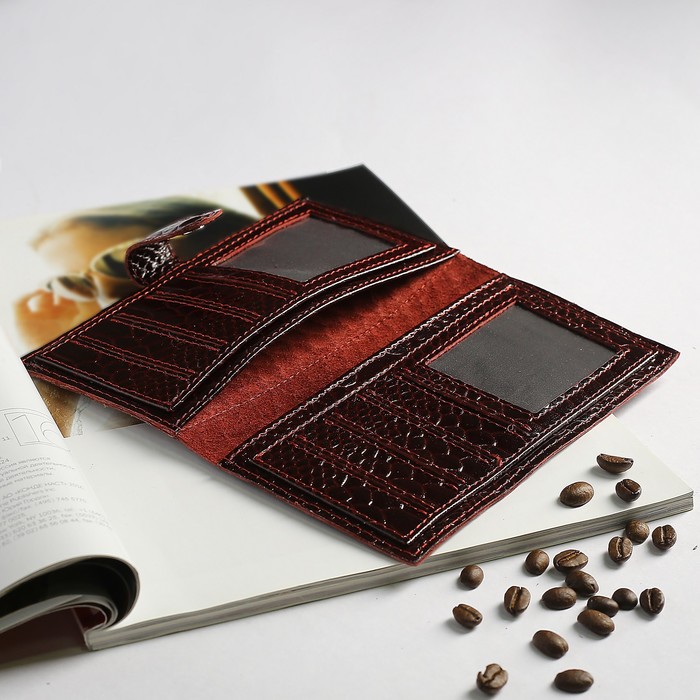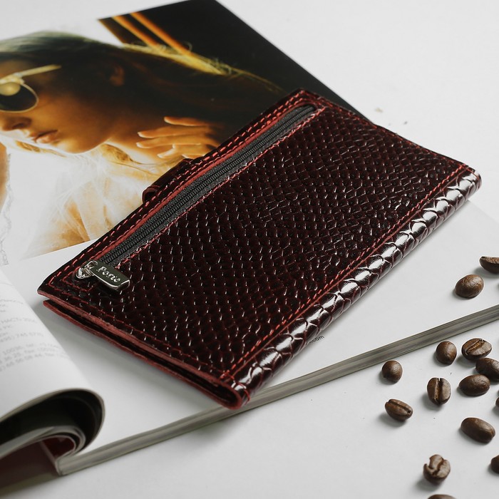 Кошелёк женский, на кнопке, 4 отдела, для карт, для монет, питон, цвет винный