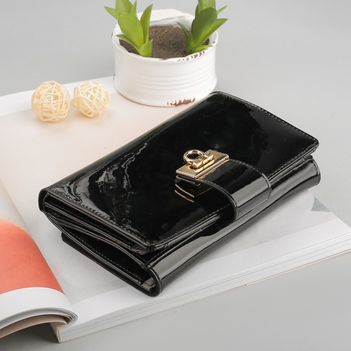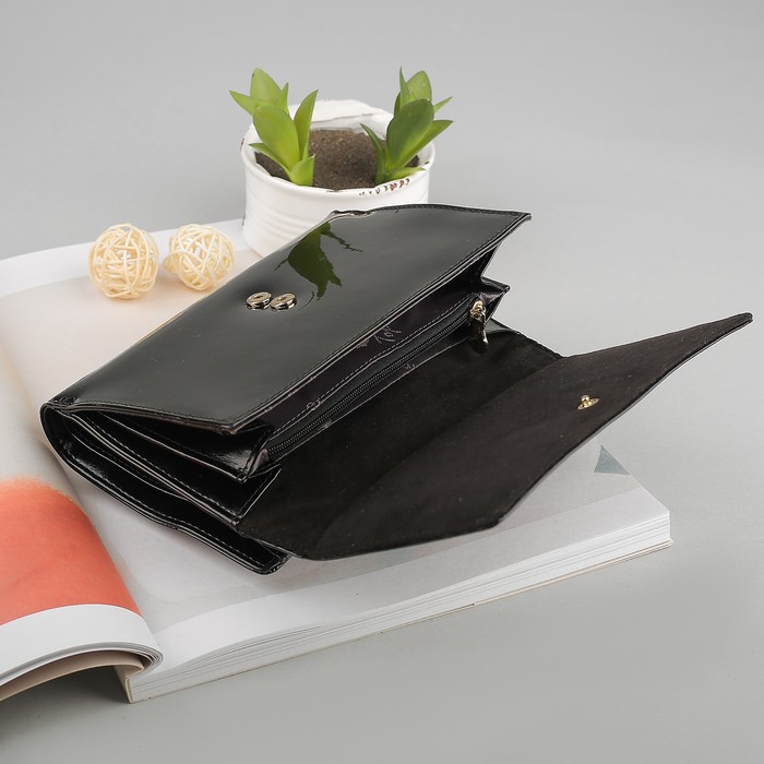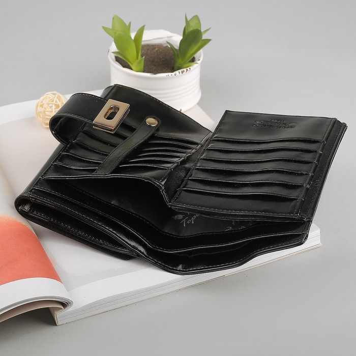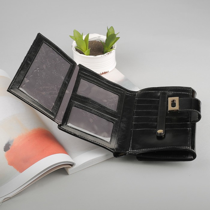 Кошелёк женский на кнопке, 4 отдела, отдел для кредиток и монет, цвет чёрный