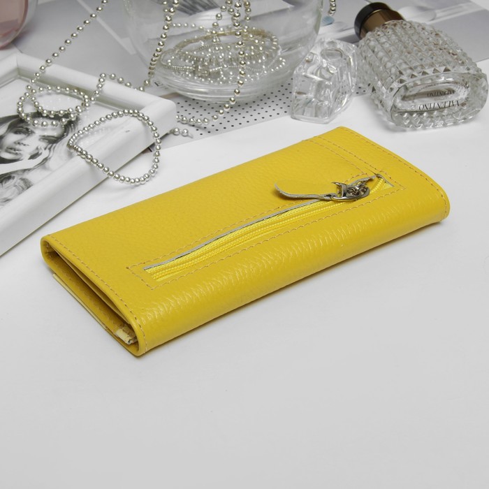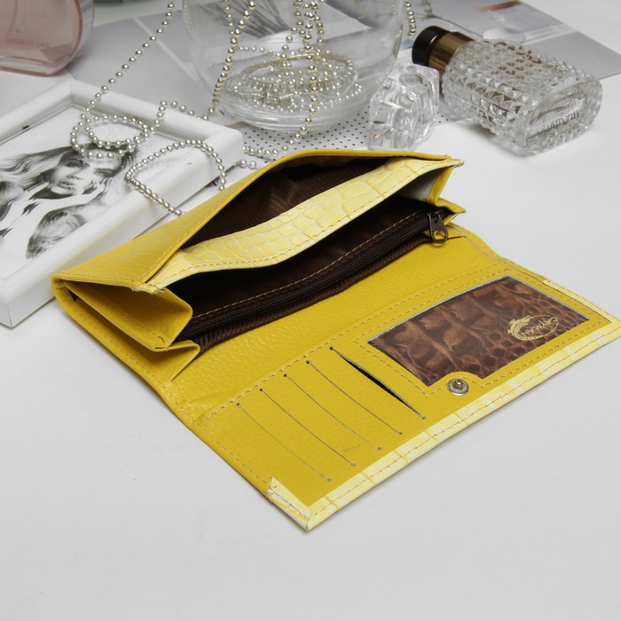 Кошелёк женский на кнопке, 4 отделения, отдел для монет, матовый, комбинированный, желтый флотер