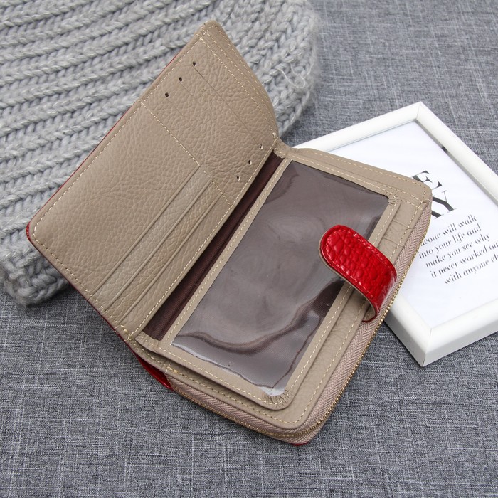 Кошелёк женский на кнопке, 6 отделов, для карт, для монет, цвет красный