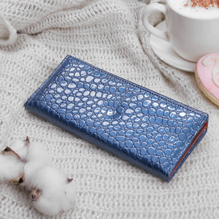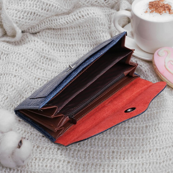 Кошелёк женский на кнопке, 6 отделов, отдел для кредиток, цвет тёмно-синий
