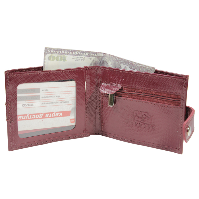 Кошелёк женский на кнопке раскладной, 1 отдел для купюр, для монет, для кредитных карт, цвет бордовый