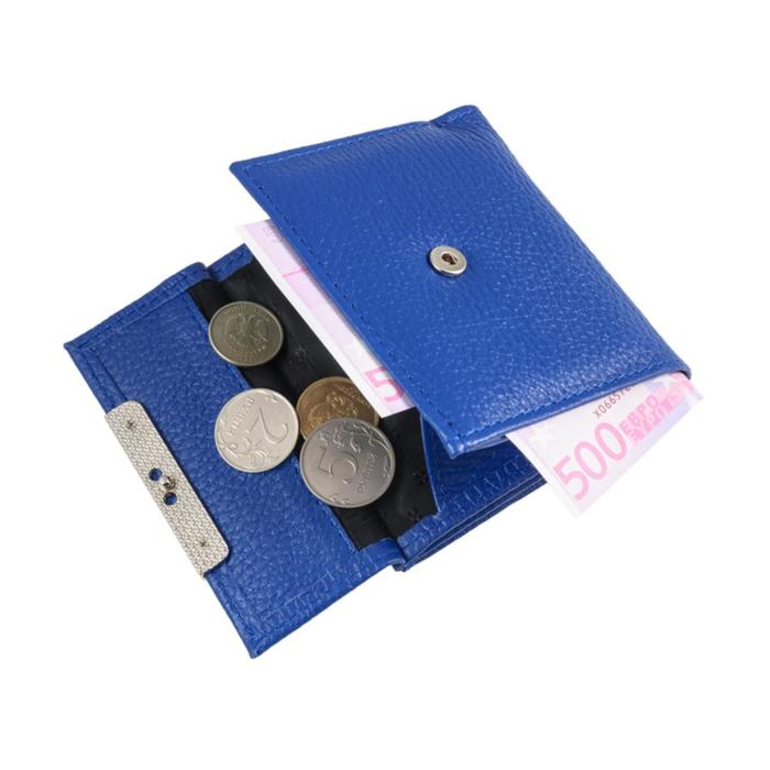 Кошелёк женский на кнопке раскладной,1 отдел для купюр, для монет, для кредитных карт, цвет синий