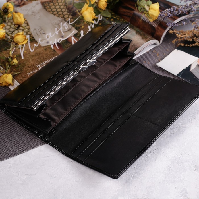 Кошелёк женский на магните, 4 отдела, для карт, 2 отдела на рамке, цвет чёрный