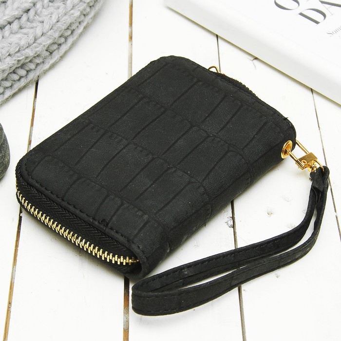 Кошелёк женский на молнии, 2 отдела, для карт, монет, с ручкой, цвет чёрный