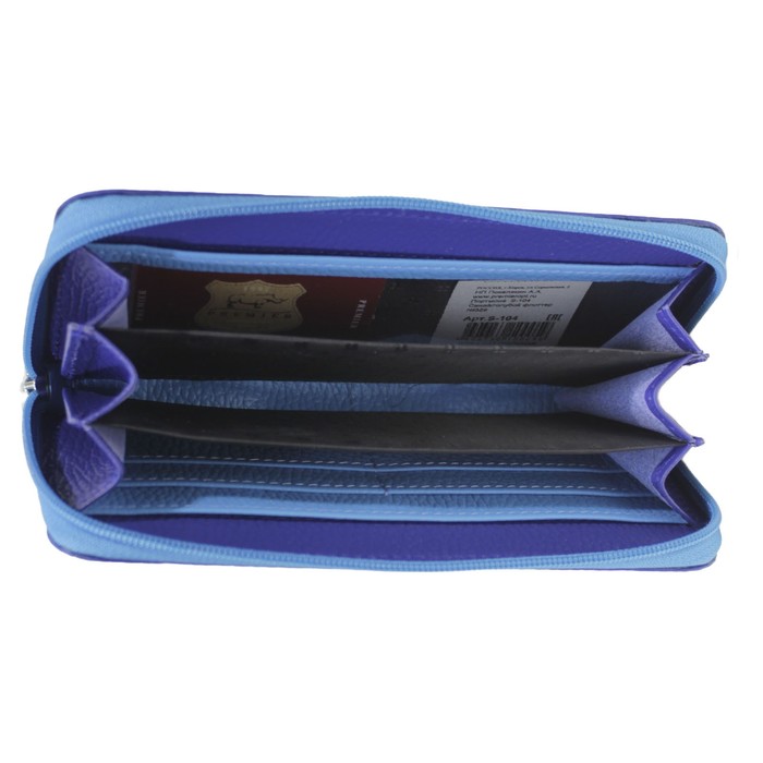 Кошелёк женский на молнии, 2 отдела для купюр, для кредитных карт, цвет синий