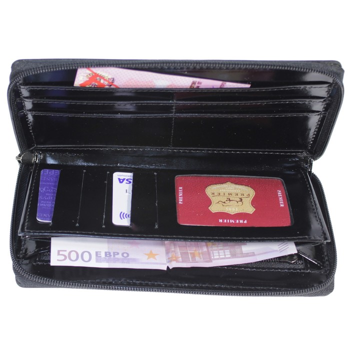Кошелёк женский на молнии, 2 отдела для купюр, для кредитных карт, для монет, цвет чёрный