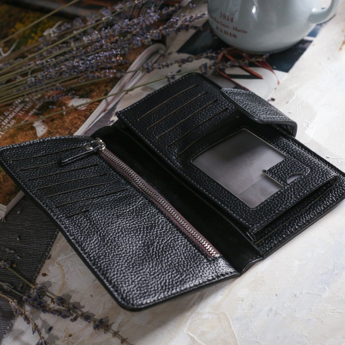 Кошелёк женский на молнии, 2 отдела, отдел для карт, монет, цвет чёрный