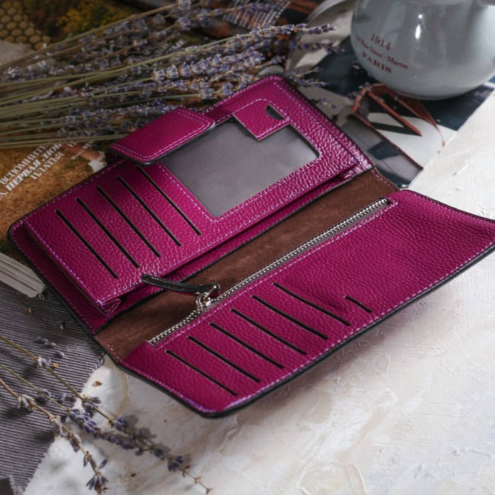 Кошелёк женский на молнии, 2 отдела, отдел для карт, монет, цвет фиолетовый