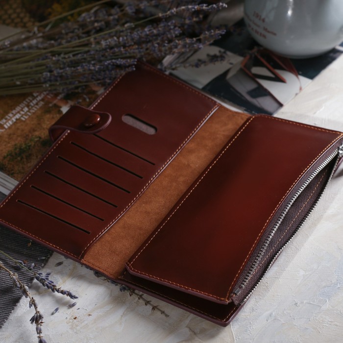 Кошелёк женский на молнии, 2 отдела, отдел для карт, монет, цвет коричневый
