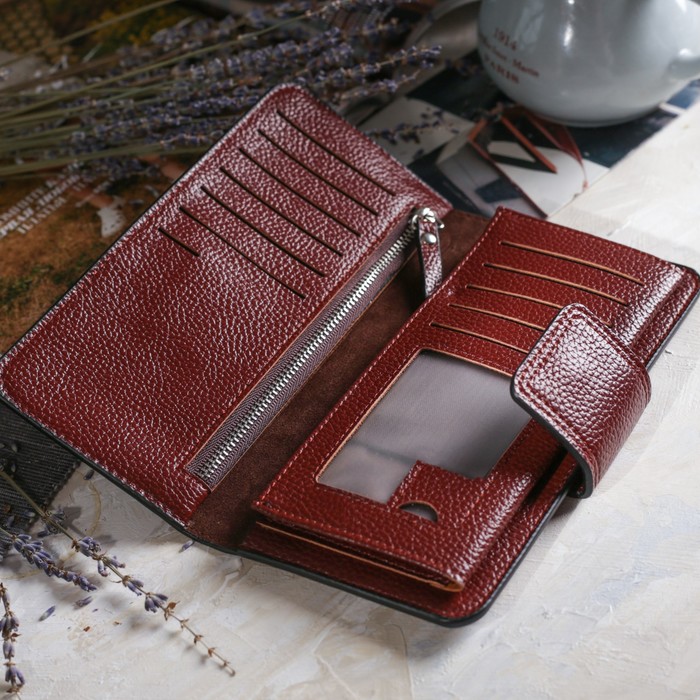 Кошелёк женский на молнии, 2 отдела, отдел для карт, монет, цвет коричневый